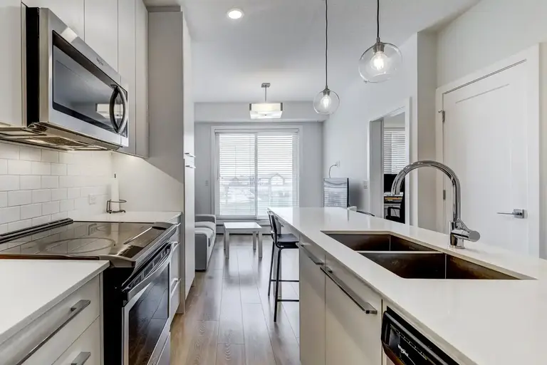 Located in the well-connected community of Cornerstone, residents enjoy five major access points and quick routes to Stoney Trail and Country Hills Blvd, making daily commutes easy and connecting you to nearby hubs like CrossIron Mills, Peter Lougheed Hospital, and the Cardel Rec Centre.Welcome to Legends at Cornerstone, where stylish condo living meets unbeatable community features. This top-floor 2-bedroom, 1-bathroom unit offers extra privacy with no neighbours above and a clear view from your large balcony, complete with BBQ hookup—ideal for summer lounging or hosting.Inside, the home is bright and thoughtfully laid out, featuring energy-efficient appliances, in-suite laundry, and plenty of storage space throughout.But it’s the building amenities that truly set this home apart. Legends offers:A beautifully designed Owner’s Lounge with an entertainment area and billiardsA Gourmet Kitchen for private events and social gatheringsA cozy Movie Theatre and Library Reading AreaFitness Centre, Spin Studio, and a Movement Studio for yoga and wellnessChildren’s Playroom and Teen Chill LoungeBike Repair Workshop and secure storageTwo landscaped courtyards with seating, BBQs, and even a life-size chess setA Community Garden for green thumbsOn-site Pet SpaAnd so much more—all designed to enrich your lifestyleRent includes heat, water, and one underground parking stall. This is a pet-friendly unit (max 2, no size restrictions, pet fee applies). No smoking or cannabis use is permitted. A virtual tour is available, and the unit will be ready for move-in on July 1, with a one-year lease required.Close to schools, parks, and transit, this unit offers an unmatched living experience in one of Calgary’s fastest-growing neighbourhoods.Apply today and make Legends at Cornerstone your next home! Note: 24 Hours Notice is required for all showings.Utilities InfoHeatWater